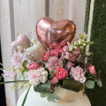 ピンク系のバルーンを使ったアレンジメントです。 バルーンは HAPPYBIRTHDAYや他のキャラクターもあります。 お色の変更可能。 画像はイメージです。時期、在庫の状況により変更になる場合があります。 お持ち帰りバッグが必要な方はアレンジメントのサイトから220円のバッグを購入ください。