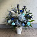 ブルー系のアレンジメントです。 色合い変更可能。 画像はイメージです。 仕入れ状況により花材が変更になる場合ございます。