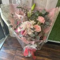 ピンクのシンピジューム・バラ・カスミソウが入った花束です。 画像はイメージです。 夏季などはシンピジュームの入荷が無い場合があります。その際には似たようなお花で代用いたします。 時期により花材が変更になる場合があります。 お持ち帰り用バッグが必要な方は220円のバッグの購入ください。
